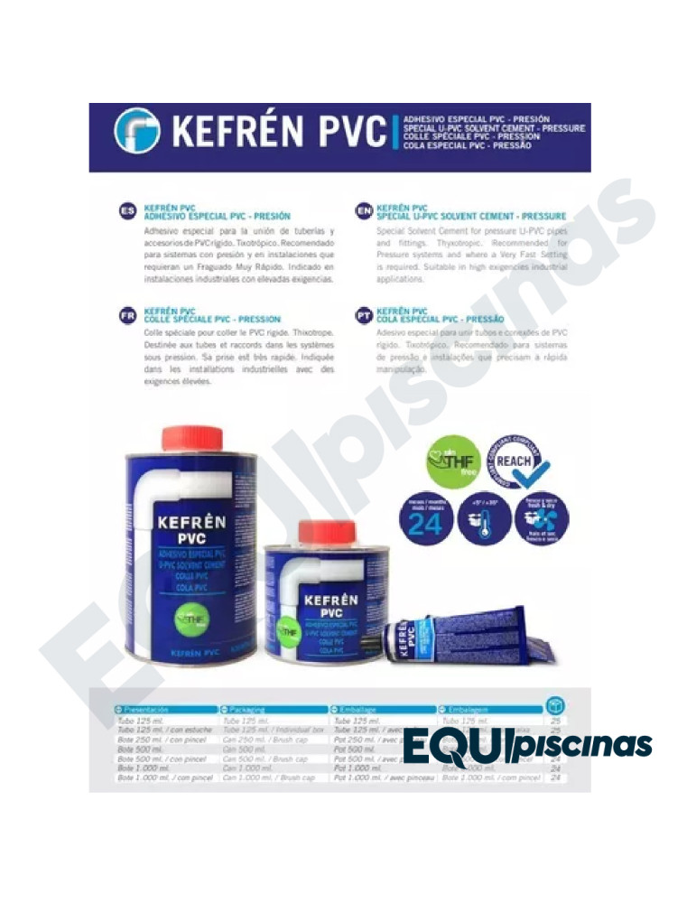 PEGAMENTO ADHESIVO PARA PVC MARCA KEFREN 500ml CON BROCHA EUROPEO