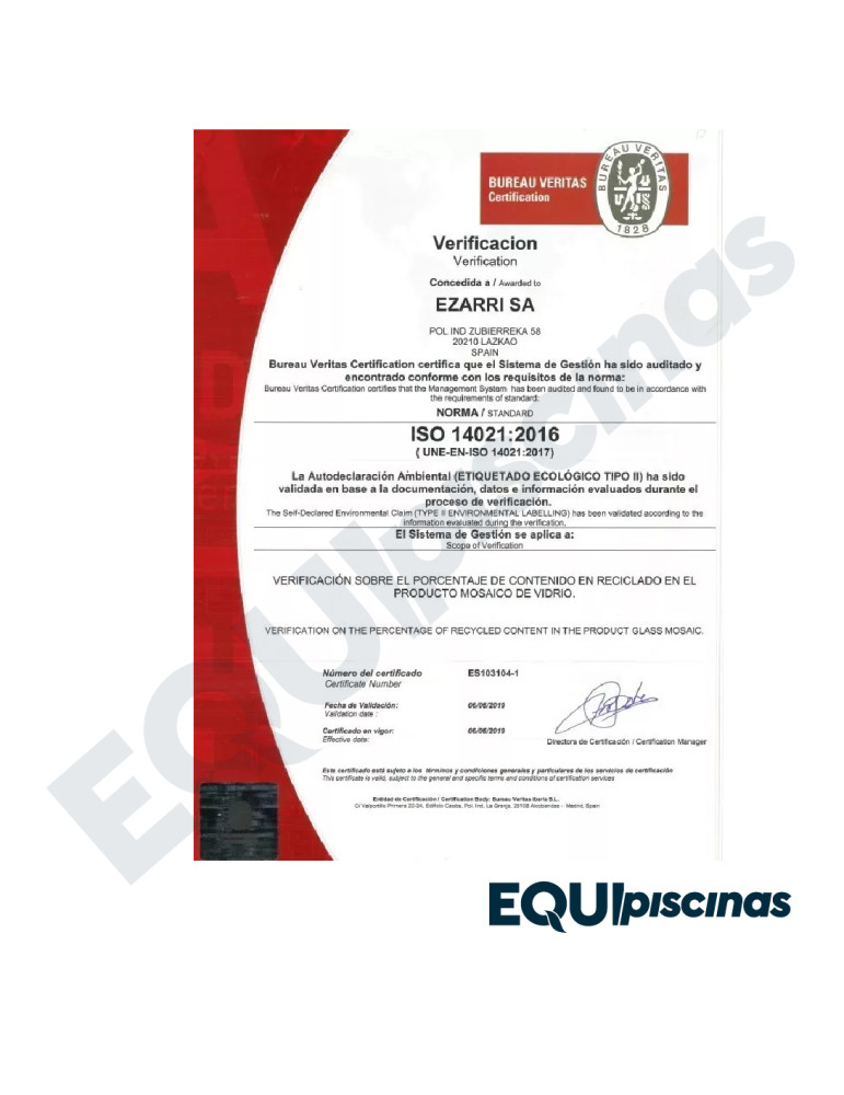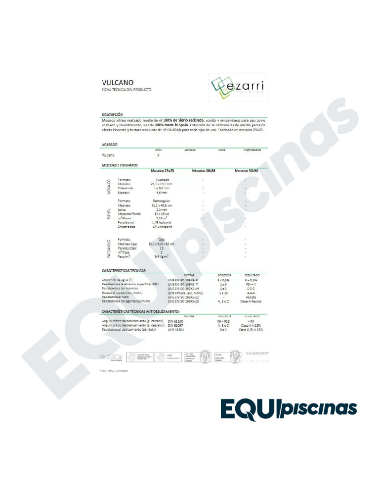 1) MARCA: EZARRI; PRESTIGIOSO FABRICANTE Y REFERENTE MUNDIAL EN MOSAICO DE VIDRIO; PRODUCTO 100% CERTIFICADO Y 100% EUROPEO; EN VENEZUELA DESDE HACE MÁS DE 30 AÑOS CON CALIDAD ABSOLUTAMENTE COMPROBADA