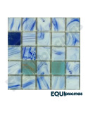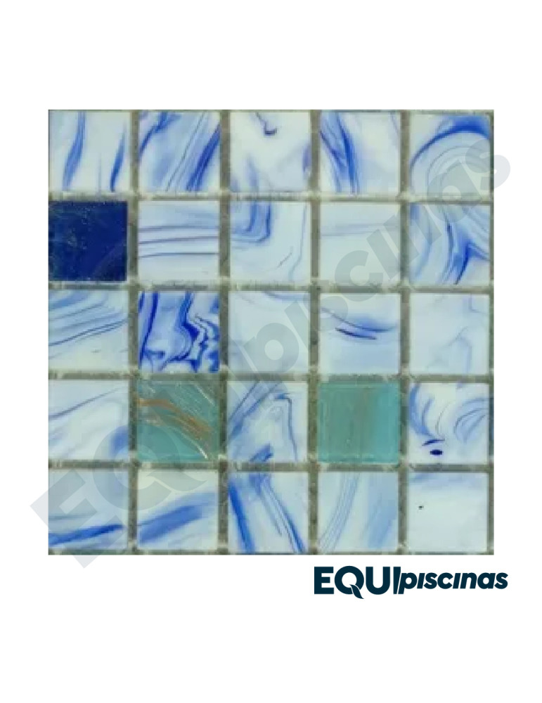 MOSAICO DE VIDRIO 2X2 MEZCLA BLANCO Y AZUL CON VETAS (GS-BLUE02-03/JA04) S/M CAJA DE 1,07M²
