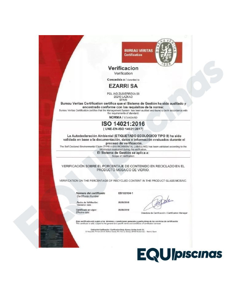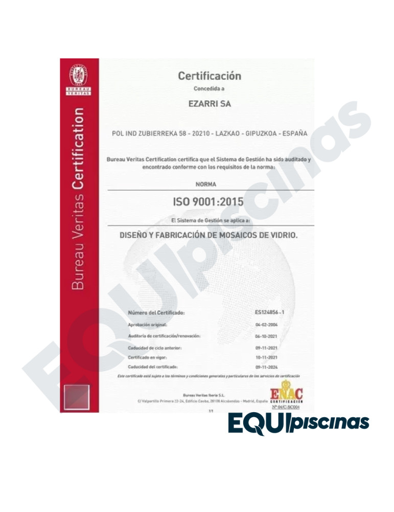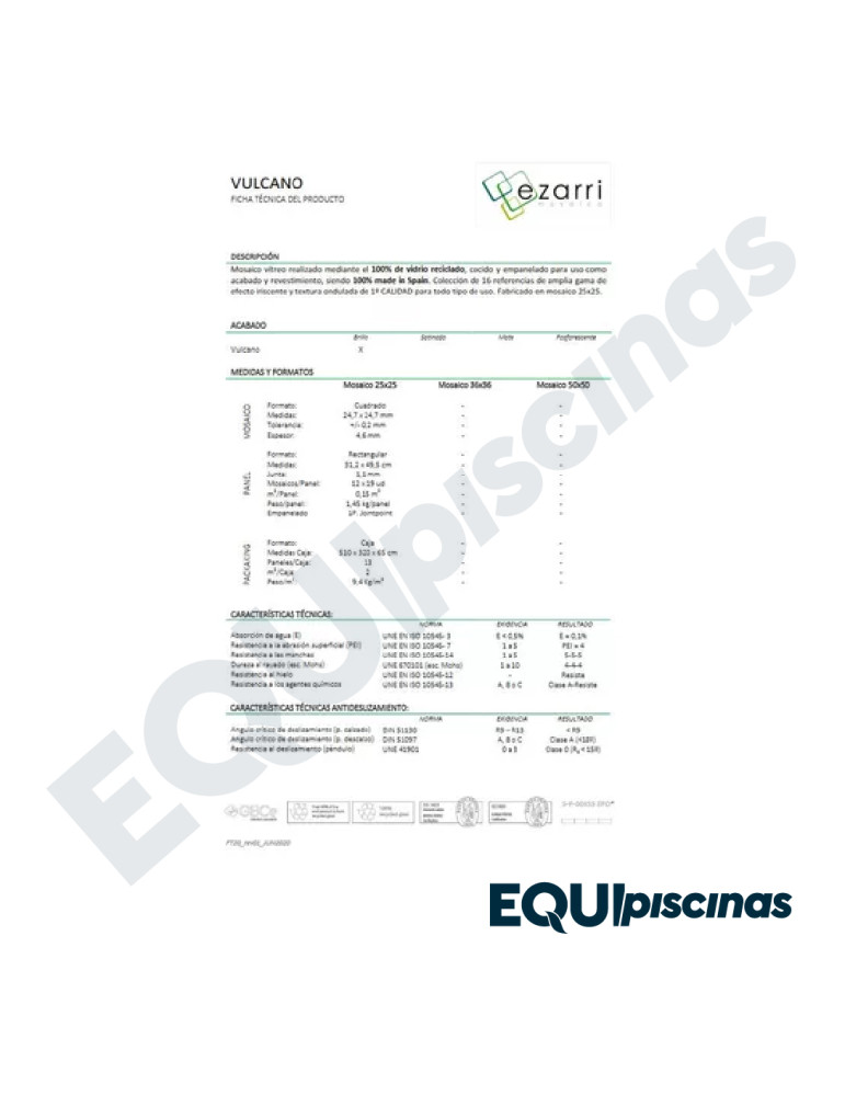1) MARCA: EZARRI; PRESTIGIOSO FABRICANTE Y REFERENTE MUNDIAL EN MOSAICO DE VIDRIO; PRODUCTO 100% CERTIFICADO Y 100% EUROPEO; EN VENEZUELA DESDE HACE MÁS DE 30 AÑOS CON CALIDAD ABSOLUTAMENTE COMPROBADA
