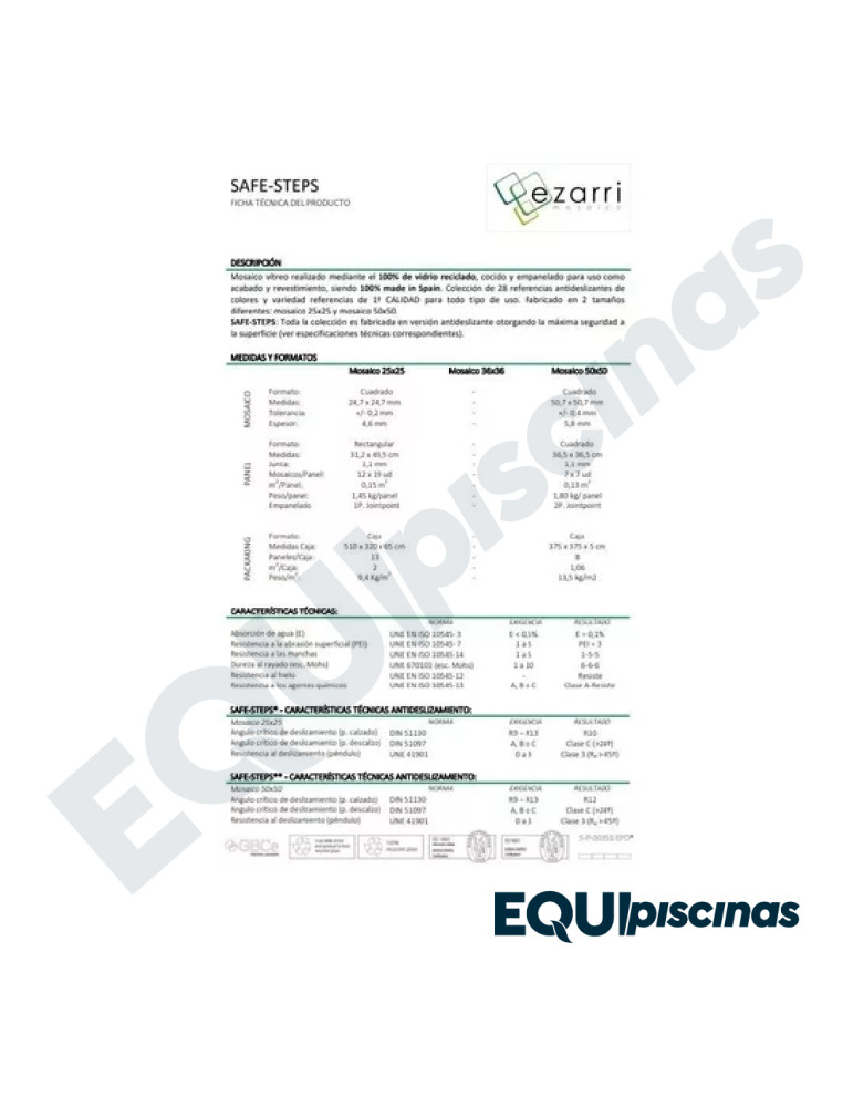 - EXCLUSIVIDAD EN EL MERCADO; EL ÚNICO MOSAICO ANTIDESLIZANTE Y CON CERTIFICACIONES DE CUMPLIMIENTO DE NORMATIVAS EUROPEAS; PRODUCTO PREMIUM