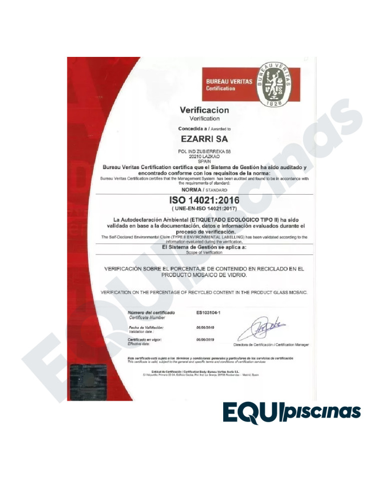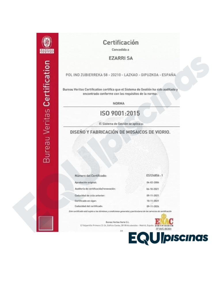 1) MARCA: EZARRI; PRESTIGIOSO FABRICANTE Y REFERENTE MUNDIAL EN MOSAICO DE VIDRIO; PRODUCTO 100% CERTIFICADO Y 100% EUROPEO; EN VENEZUELA DESDE HACE MÁS DE 30 AÑOS CON CALIDAD ABSOLUTAMENTE COMPROBADA