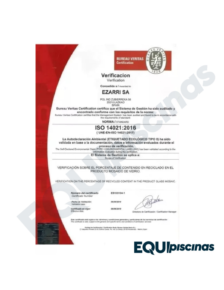 1) MARCA: EZARRI; PRESTIGIOSO FABRICANTE Y REFERENTE MUNDIAL EN MOSAICO DE VIDRIO; PRODUCTO 100% CERTIFICADO Y 100% EUROPEO; EN VENEZUELA DESDE HACE MÁS DE 30 AÑOS CON CALIDAD ABSOLUTAMENTE COMPROBADA