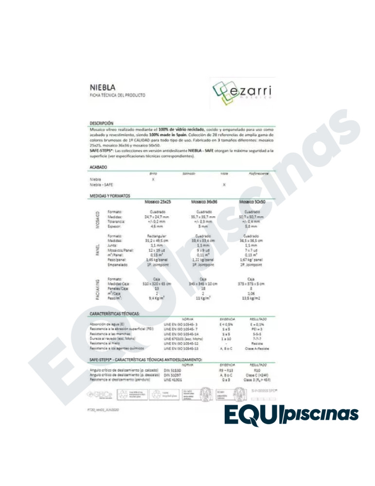 1) MARCA: EZARRI; PRESTIGIOSO FABRICANTE Y REFERENTE MUNDIAL EN MOSAICO DE VIDRIO; PRODUCTO 100% CERTIFICADO Y 100% EUROPEO; EN VENEZUELA DESDE HACE MÁS DE 30 AÑOS CON CALIDAD ABSOLUTAMENTE COMPROBADA