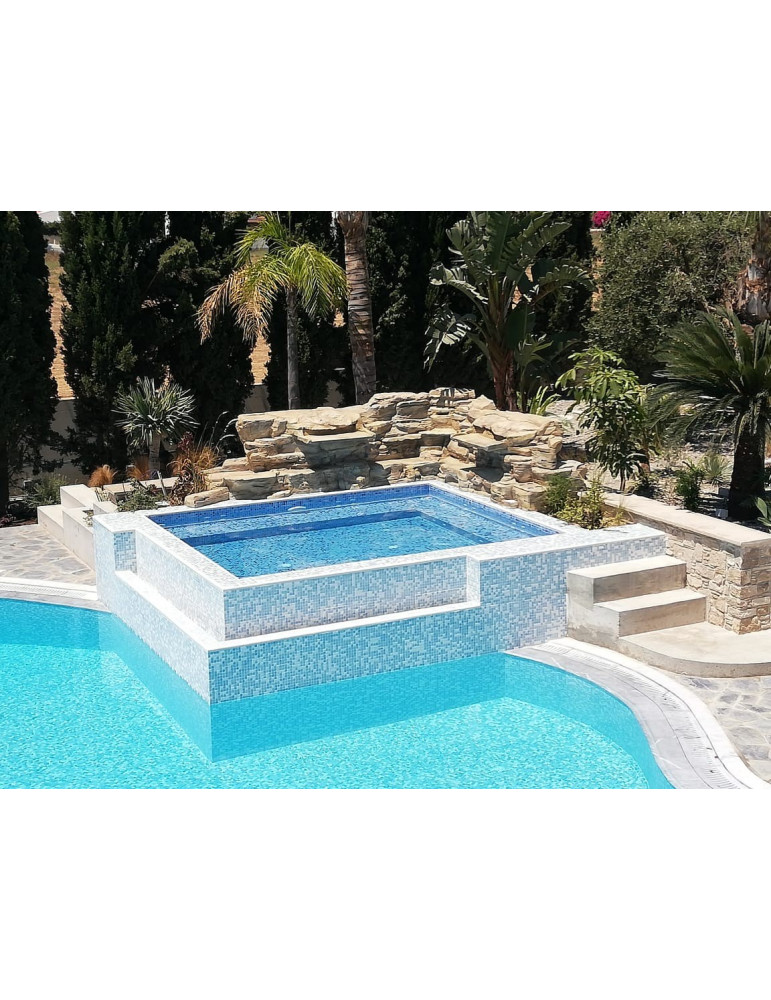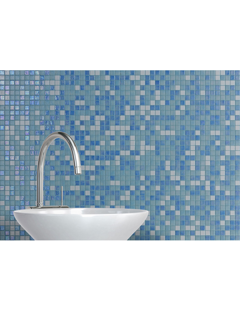 MOSAICO DE VIDRIO MEDITERRANEO 2.5X2.5cm MEZCLA DE AZULES SKY IRIS CAJA DE 2Mts² EZARRI (EUROPEO)