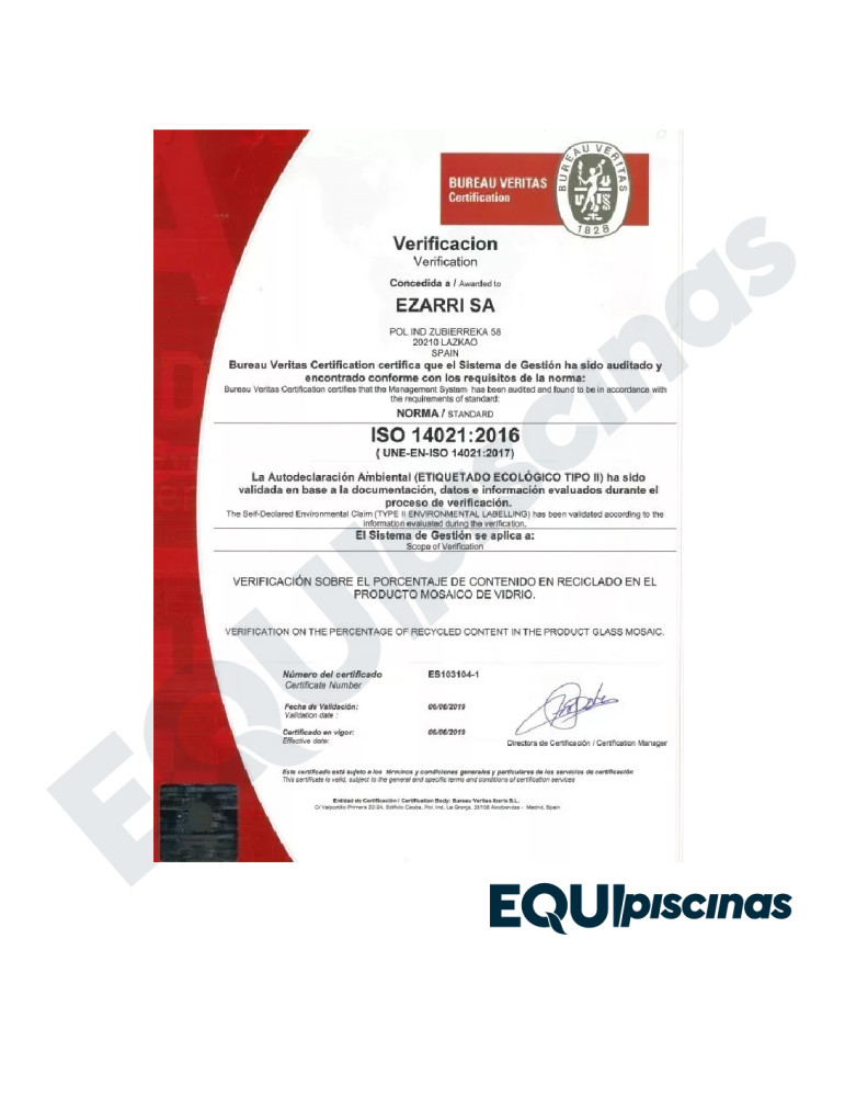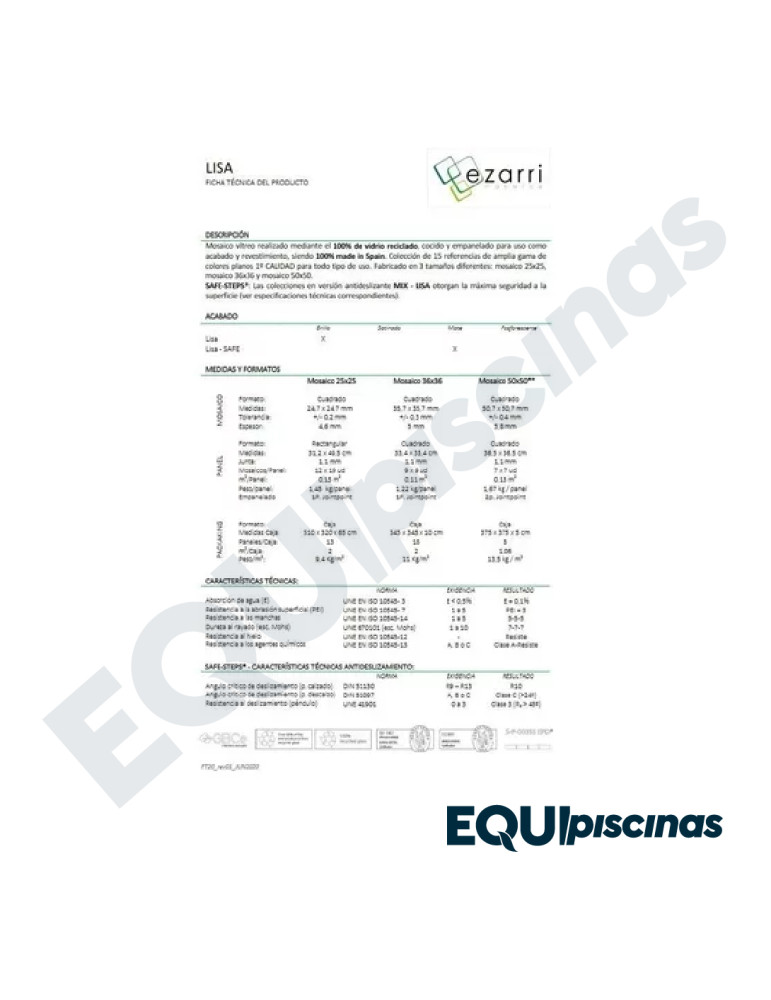 1) MARCA: EZARRI; PRESTIGIOSO FABRICANTE Y REFERENTE MUNDIAL EN MOSAICO DE VIDRIO; PRODUCTO 100% CERTIFICADO Y 100% EUROPEO; EN VENEZUELA DESDE HACE MÁS DE 30 AÑOS CON CALIDAD ABSOLUTAMENTE COMPROBADA