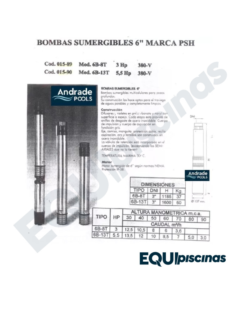 COD.015-89 BOMBA SUMERGIBLE POZO PSH 3 HP 380V