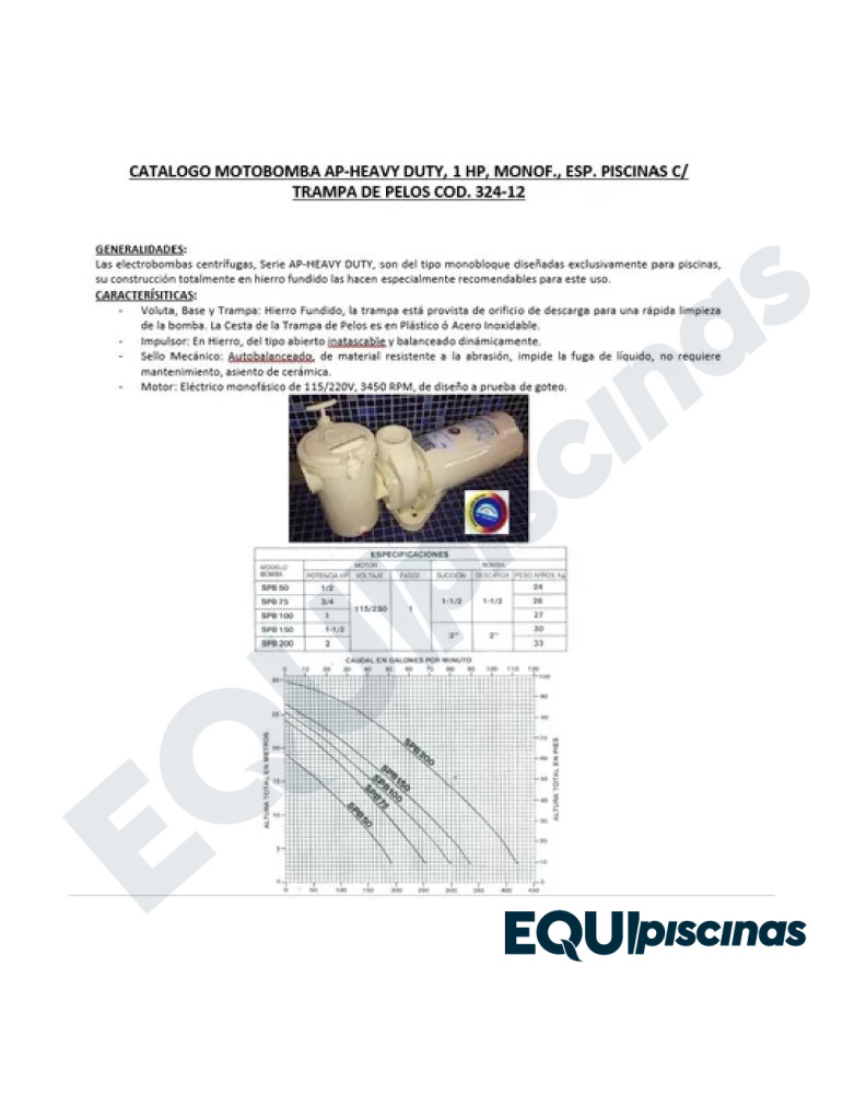 BOMBA AP-HEAVY DUTY, 1 HP, MONOF., 110/220V, C/ TRAMPA DE PELOS EN HIERRO FUNDIDO