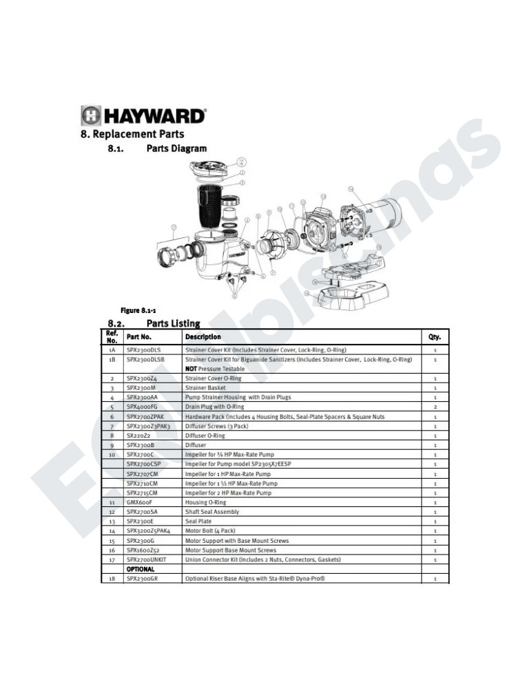 a) Marca: Hayward; 100% Norteamericana; Líder Mundial en Equipos y sistemas para piscinas, fuentes y Spas.