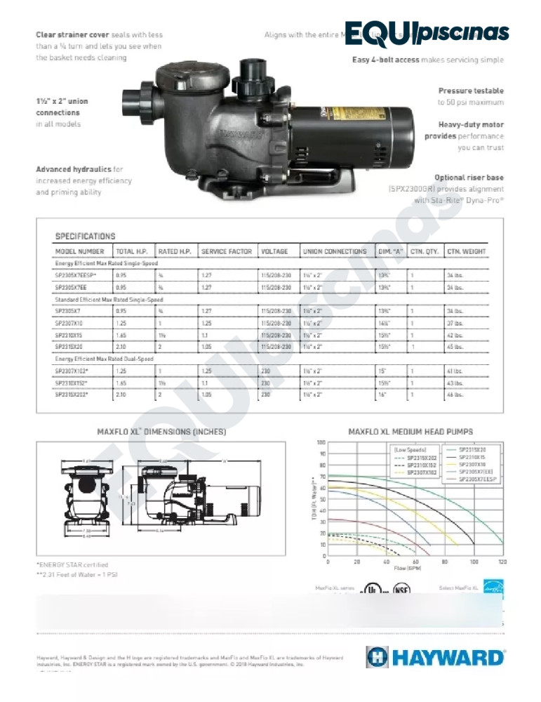 - Las bombas de alta eficiencia MaxFlo® XL de Hayward son para aplicaciones de nivel inicial y proporcionan un sistema hidráulico avanzado, a la vez que mantienen la economía y el rendimiento probado de la familia MaxFlo.