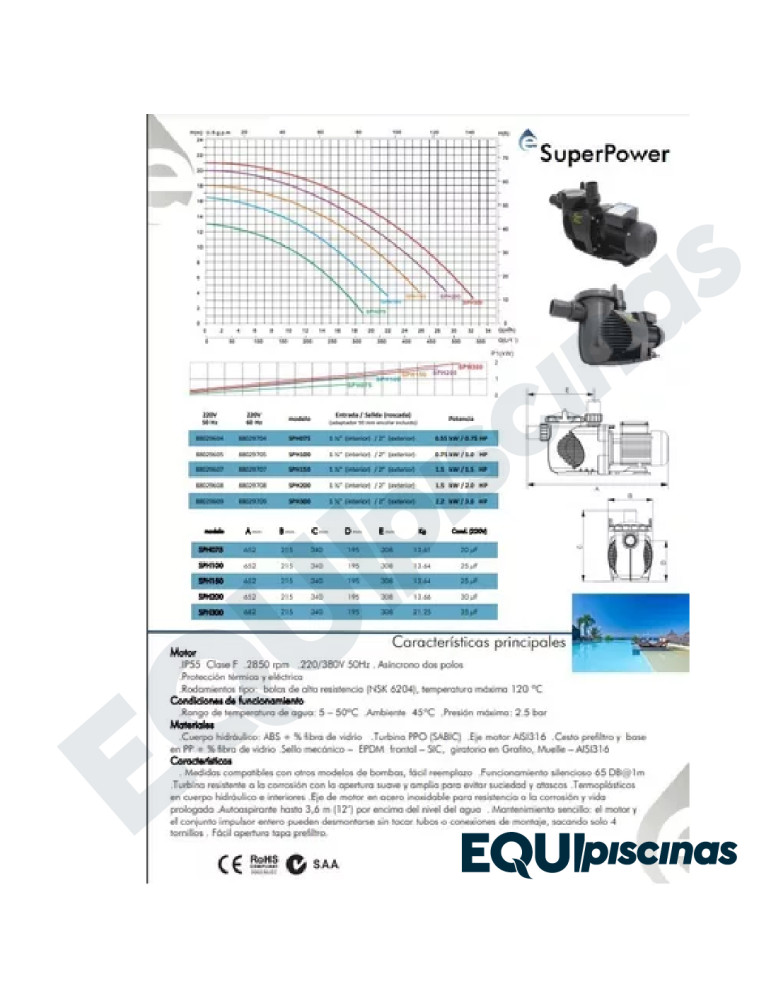 c) Diseñada y fabricada para los profesionales. Para piscina privada y spa. Emaux, gracias a su reputación por sus innovaciones y basándose en el feedback del mercado, ha desarrollado la Serie SPH respondiendo a la necesidad de los profesionales de la piscina de contar con una bomba de confianza y económica para nuevas instalaciones y renovaciones.