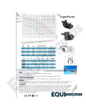 d) CAUDAL MÁXIMO: 484 Lts/Min; en un período de filtración de 6 horas logra recircular sin mayor esfuerzo 174.000 Lts de agua. Trabaja perfectamente con Filtros de 36", para Hidromasajes y para Cascadas.