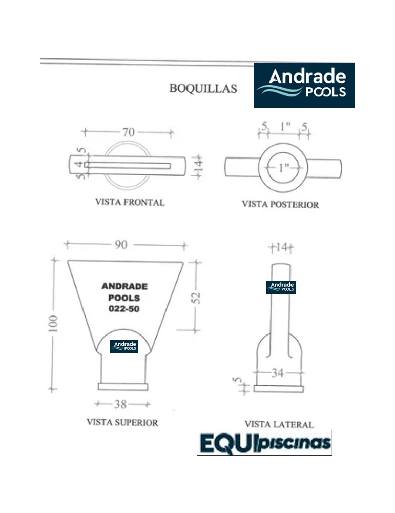 1) MARCA: ANDRADE POOLS; PRODUCTOS CON MÁS DE 35 AÑOS EN EL MERCADO; AMPLIAMENTE CONOCIDOS POR CLIENTES, CONSTRUCTORES E INSTALADORES