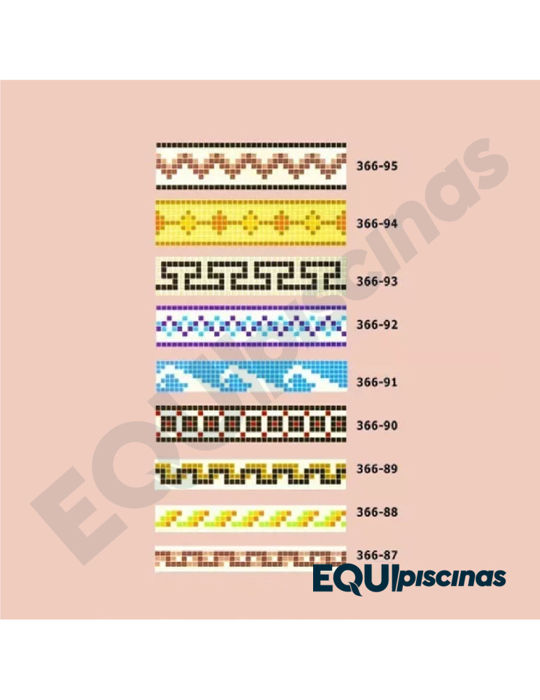 6) DIMENSIONES: TAMAÑO DEL MOSAICO 2X2cm ; ESPESOR: 3mm; LÁMINA 15cm. Caja de 20,80 mteros lineales
