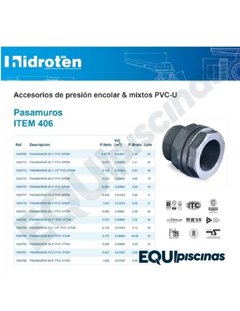 ATACA TANQUE PASAMUROS HIDROTEN 50MM-2" VITON 1002785
