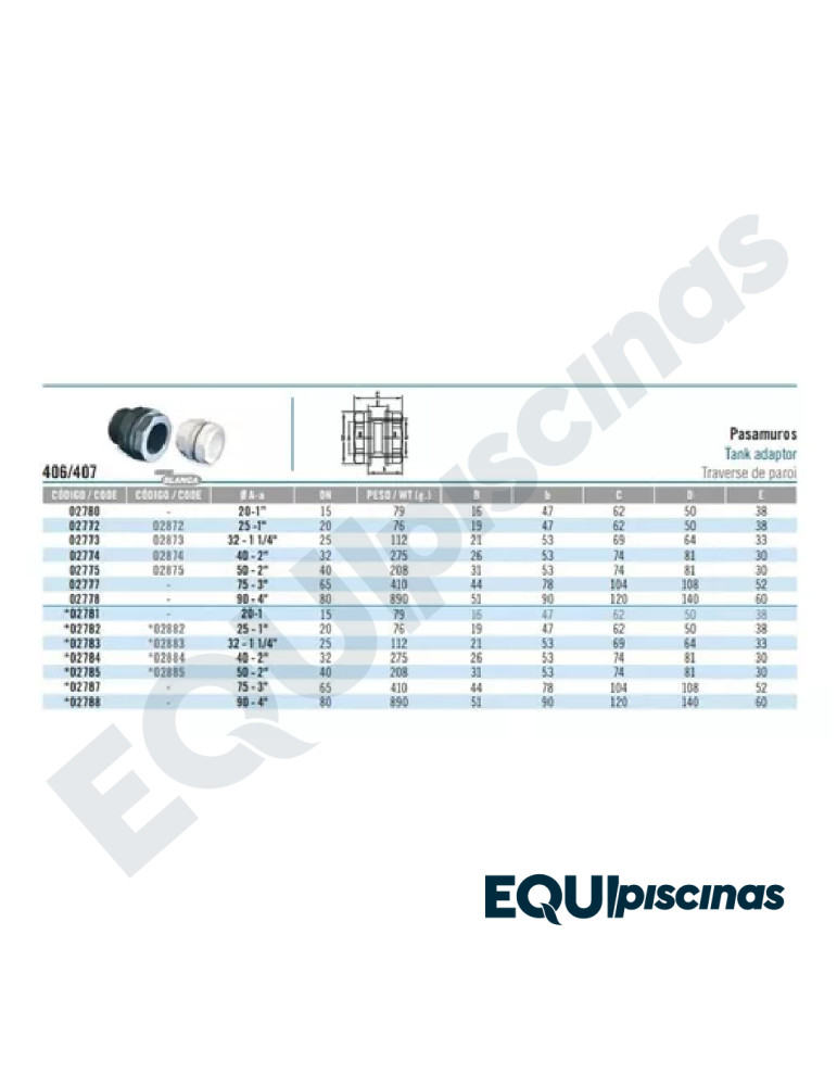 4) INSTALACIÓN Y APLICACIONES: IDEAL PARA TOMAS DE AGUA EN TANQUES DE AGUA DE PLÁSTICO O FIBRA DE GRANDES VOLÚMENES; FILTROS DE PISCINAS DE FIBRA O PLÁSTICO PARA CONECTAR VÁLVULAS MUTIPORT LATERALES.
