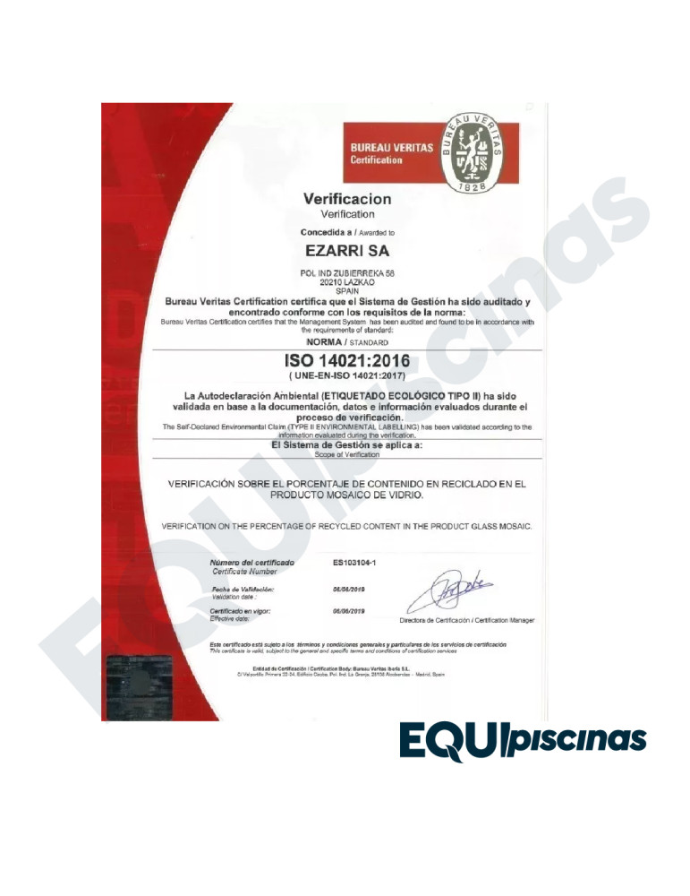 1) MARCA: EZARRI; PRESTIGIOSO FABRICANTE Y REFERENTE MUNDIAL EN MOSAICO DE VIDRIO; PRODUCTO 100% CERTIFICADO Y 100% EUROPEO; EN VENEZUELA DESDE HACE MÁS DE 30 AÑOS CON CALIDAD ABSOLUTAMENTE COMPROBADA