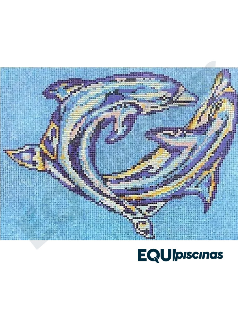 MOSAICO DE VIDRIO MEDITERRANEO 2.5X2.5cm FIGURA DECORATIVA DOS DELFINES DE 10 Mts² EZARRI (EUROPEO)