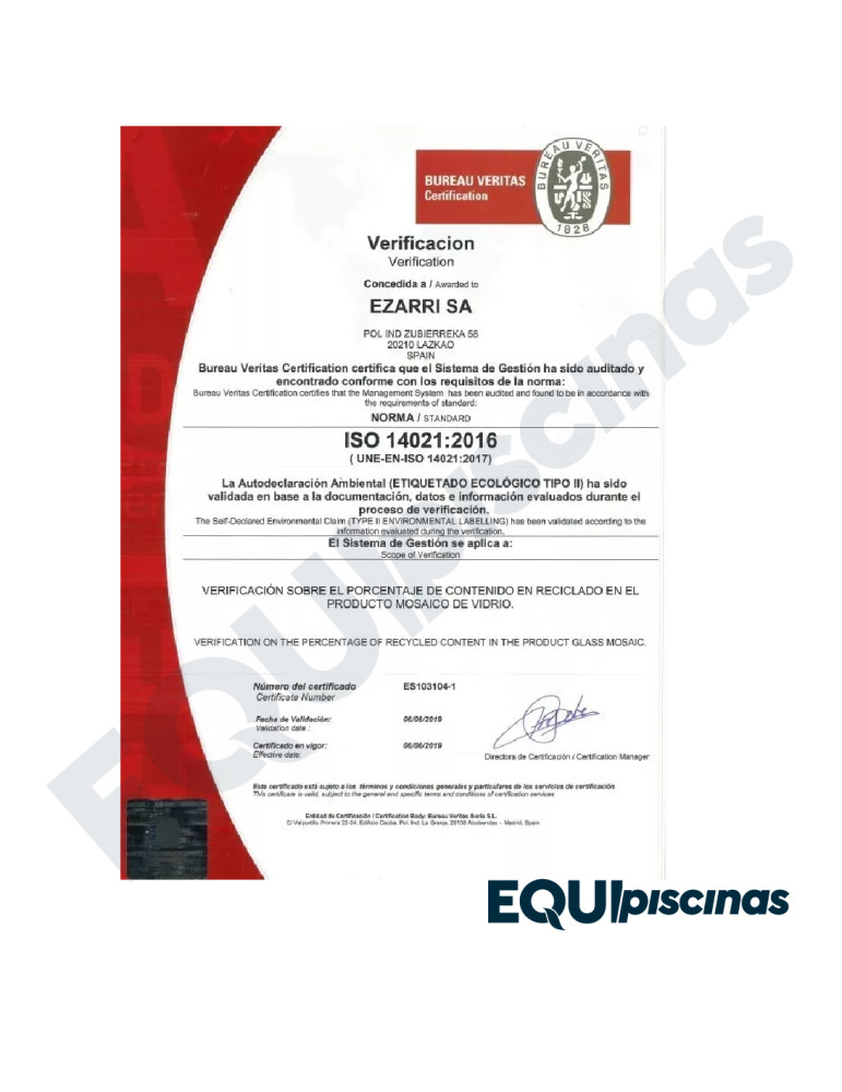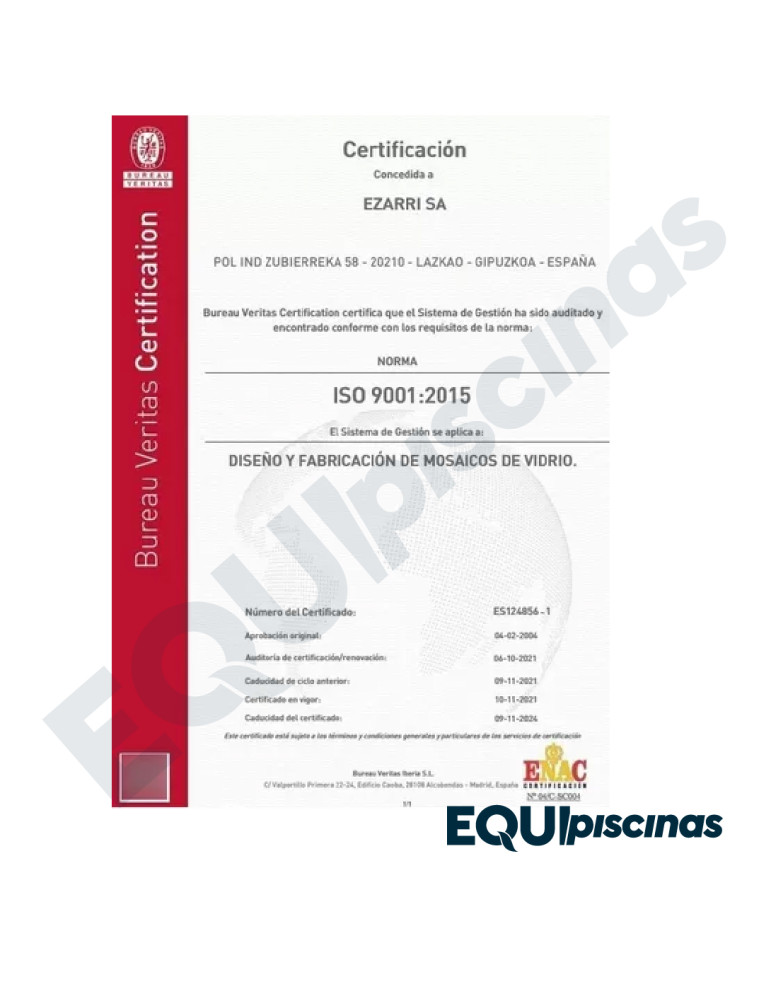 1) MARCA: EZARRI; PRESTIGIOSO FABRICANTE Y REFERENTE MUNDIAL EN MOSAICO DE VIDRIO; PRODUCTO 100% CERTIFICADO Y 100% EUROPEO; EN VENEZUELA DESDE HACE MÁS DE 30 AÑOS CON CALIDAD ABSOLUTAMENTE COMPROBADA