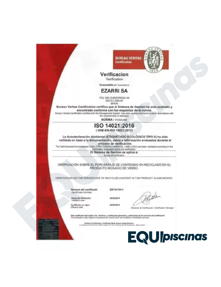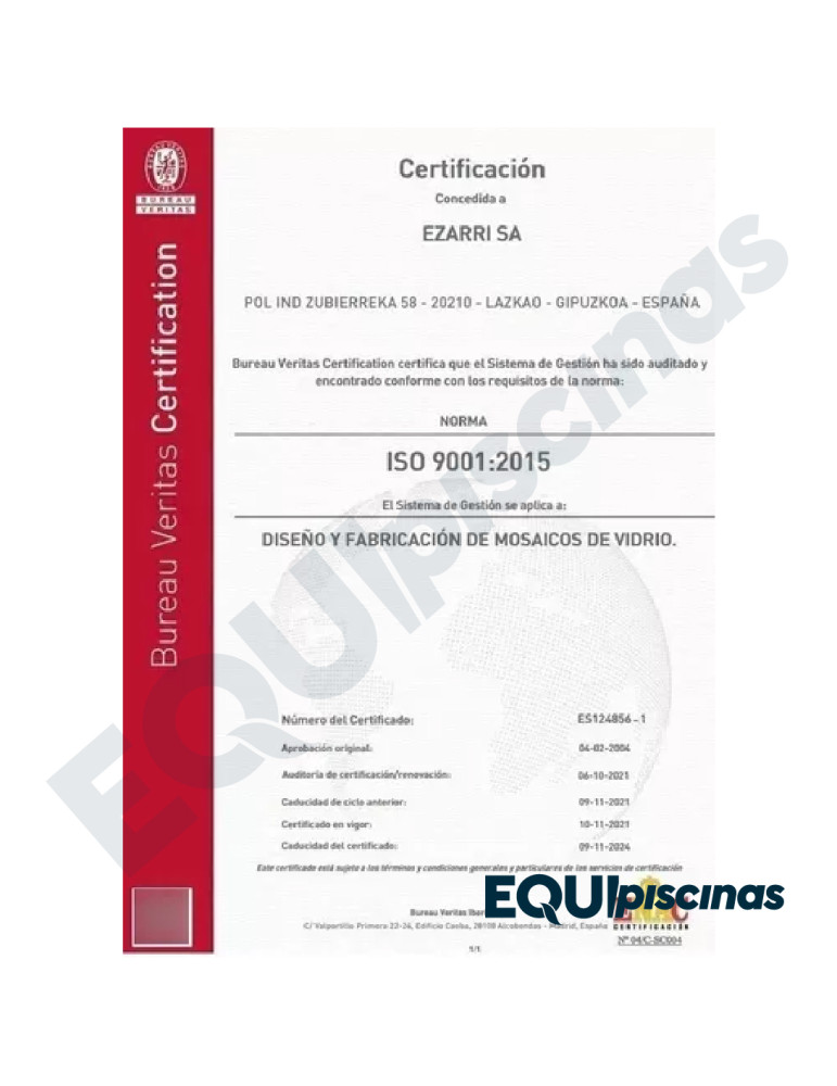 1) MARCA: EZARRI; PRESTIGIOSO FABRICANTE Y REFERENTE MUNDIAL EN MOSAICO DE VIDRIO; PRODUCTO 100% CERTIFICADO Y 100% EUROPEO; EN VENEZUELA DESDE HACE MÁS DE 30 AÑOS CON CALIDAD ABSOLUTAMENTE COMPROBADA