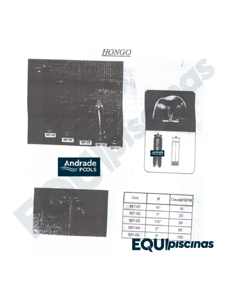SURTIDOR TIPO HONGO EN BRONCE ANDRADE POOLS 1" MOD CAT.CCA-445