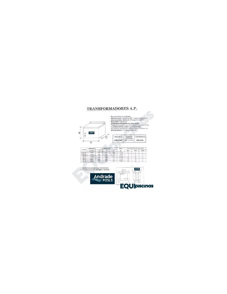 - EL TRASFORMADOR ESTÁ DISEÃDO PARA SU USO EN EQUIPOS PARA PISCINAS QUE REQUIEREN BAJO VOLTAJE, ES DECIR, 12V-13V-14V. HAY MODELOS PARA 24V.