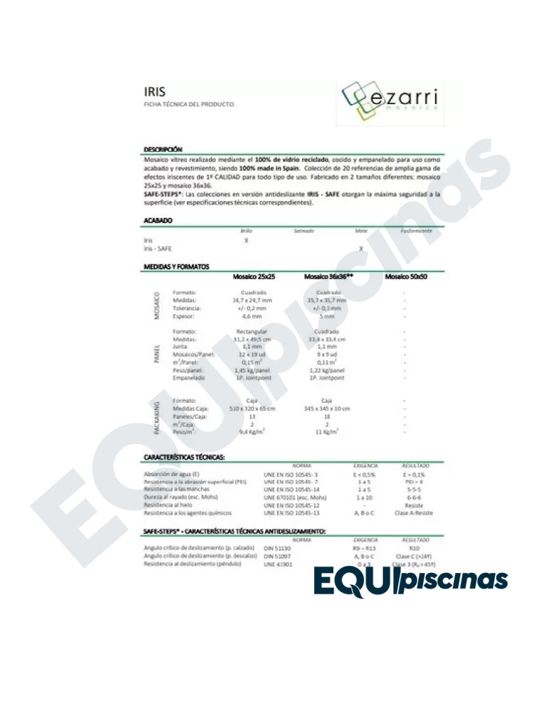 1) MARCA: EZARRI; PRESTIGIOSO FABRICANTE Y REFERENTE MUNDIAL EN MOSAICO DE VIDRIO; PRODUCTO 100% CERTIFICADO Y 100% EUROPEO; EN VENEZUELA DESDE HACE MÁS DE 30 AÑOS CON CALIDAD ABSOLUTAMENTE COMPROBADA
