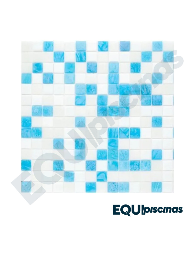 MOSAICO DE VIDRIO 2X2 MEZCLA BLANCO Y AZUL CIELO S/P CAJA DE 4,28M²