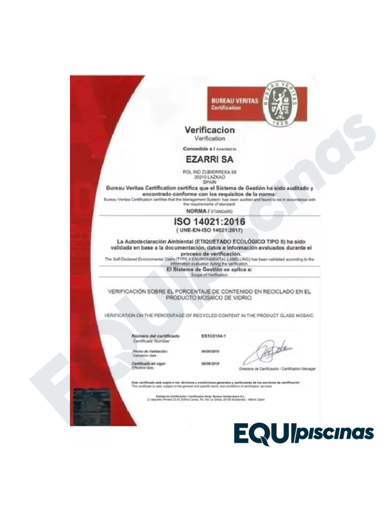 1) MARCA: EZARRI; PRESTIGIOSO FABRICANTE Y REFERENTE MUNDIAL EN MOSAICO DE VIDRIO; PRODUCTO 100% CERTIFICADO Y 100% EUROPEO; EN VENEZUELA DESDE HACE MÁS DE 30 AÑOS CON CALIDAD ABSOLUTAMENTE COMPROBADA