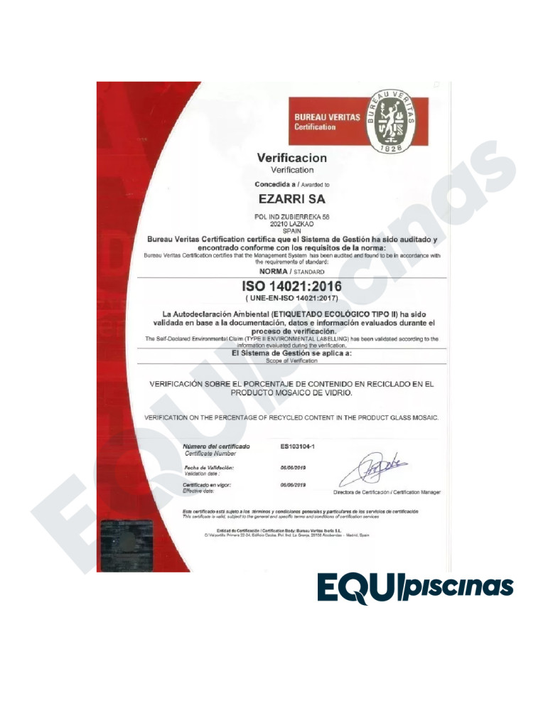 1) MARCA: EZARRI; PRESTIGIOSO FABRICANTE Y REFERENTE MUNDIAL EN MOSAICO DE VIDRIO; PRODUCTO 100% CERTIFICADO Y 100% EUROPEO; EN VENEZUELA DESDE HACE MÁS DE 30 AÑOS CON CALIDAD ABSOLUTAMENTE COMPROBADA