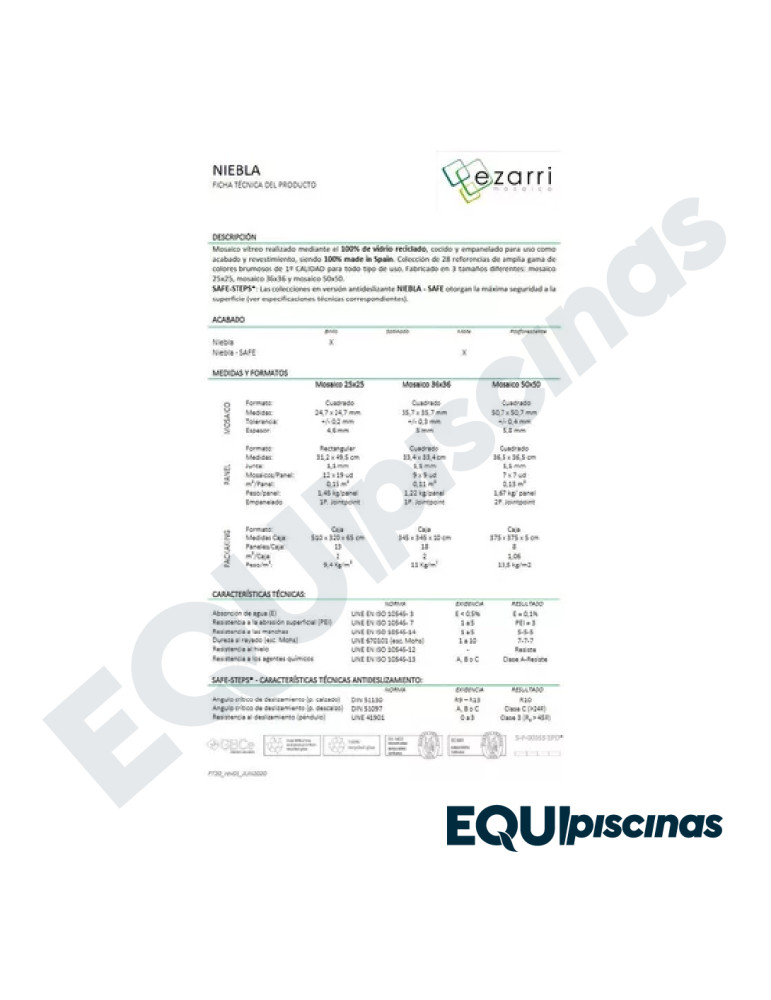 1) MARCA: EZARRI; PRESTIGIOSO FABRICANTE Y REFERENTE MUNDIAL EN MOSAICO DE VIDRIO; PRODUCTO 100% CERTIFICADO Y 100% EUROPEO; EN VENEZUELA DESDE HACE MÁS DE 30 AÑOS CON CALIDAD ABSOLUTAMENTE COMPROBADA