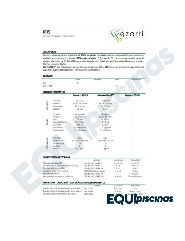 1) MARCA: EZARRI; PRESTIGIOSO FABRICANTE Y REFERENTE MUNDIAL EN MOSAICO DE VIDRIO; PRODUCTO 100% CERTIFICADO Y 100% EUROPEO; EN VENEZUELA DESDE HACE MÁS DE 30 AÑOS CON CALIDAD ABSOLUTAMENTE COMPROBADA