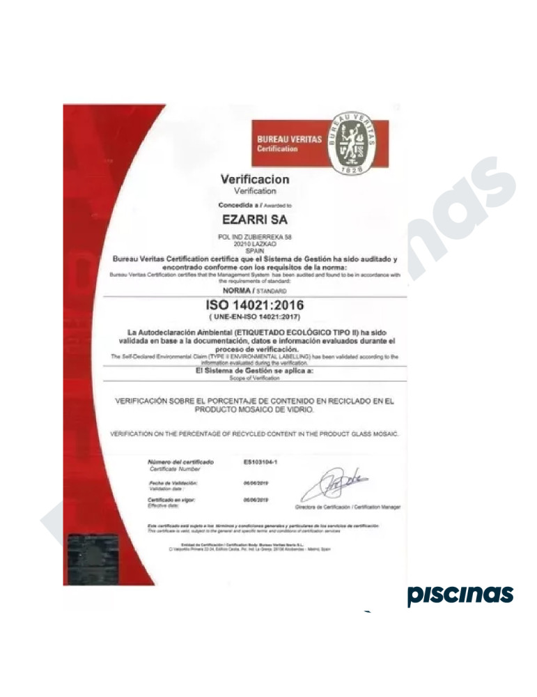 1) MARCA: EZARRI; PRESTIGIOSO FABRICANTE Y REFERENTE MUNDIAL EN MOSAICO DE VIDRIO; PRODUCTO 100% CERTIFICADO Y 100% EUROPEO; EN VENEZUELA DESDE HACE MÁS DE 30 AÑOS CON CALIDAD ABSOLUTAMENTE COMPROBADA