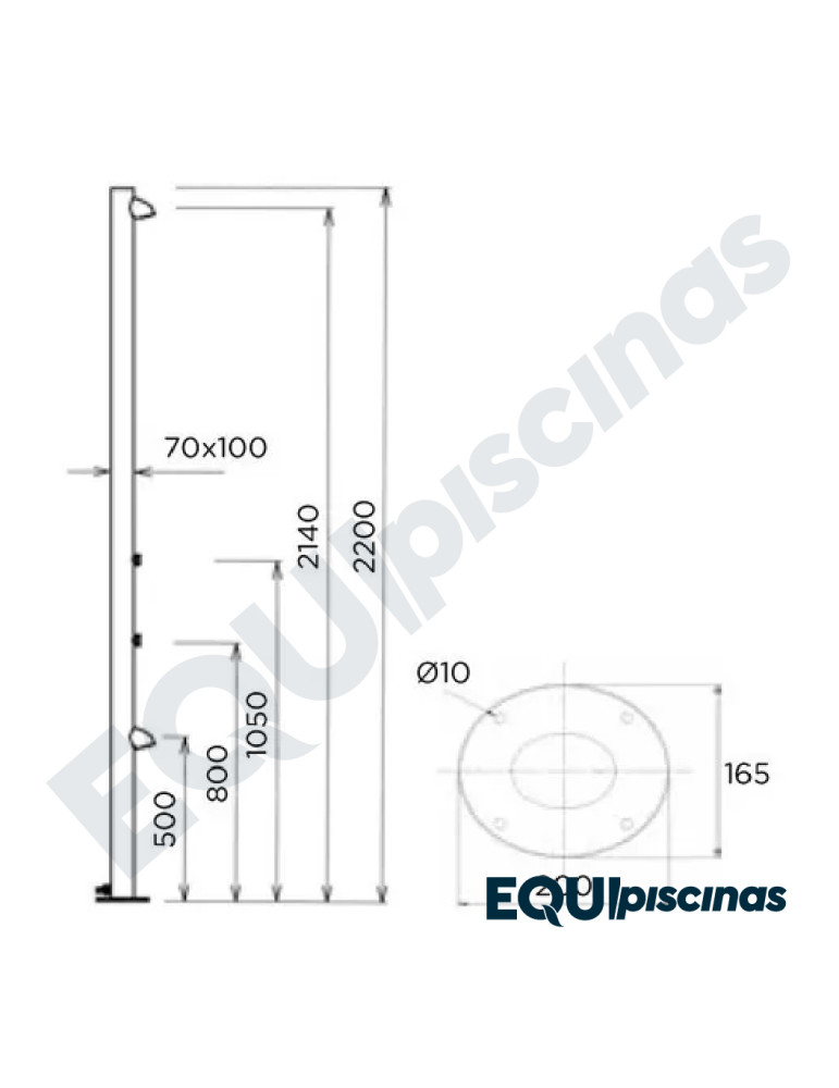 DUCHA EN ACERO INOX A316 MARCA FLEXINOX MOD. OVAL CON LAVAPIES