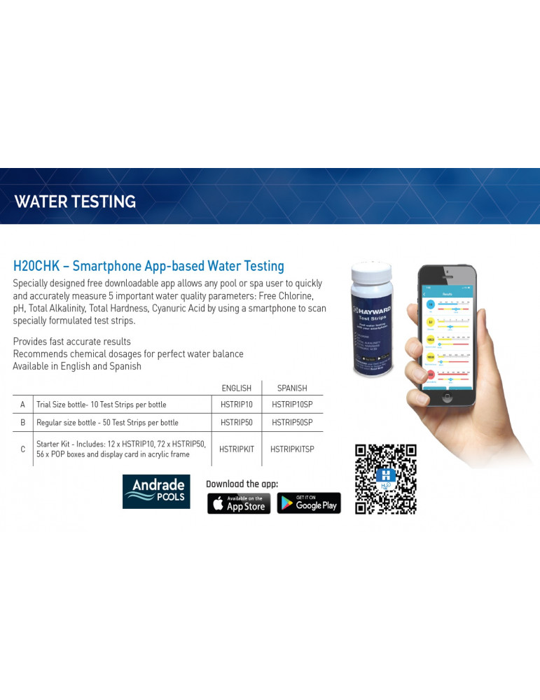 Descarga la aplicación gratuita «Hayward H2OCHK» en cualquier App Store.