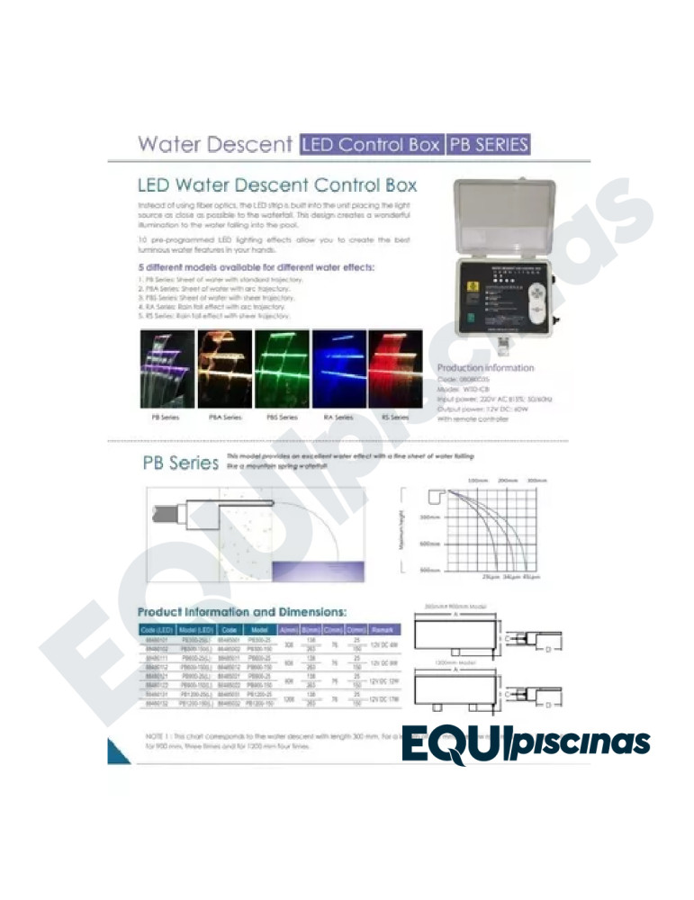 CASCADA EMAUX - WATER DESCENT 600-25, 8w LED (APROX 24 GPM-1HP)