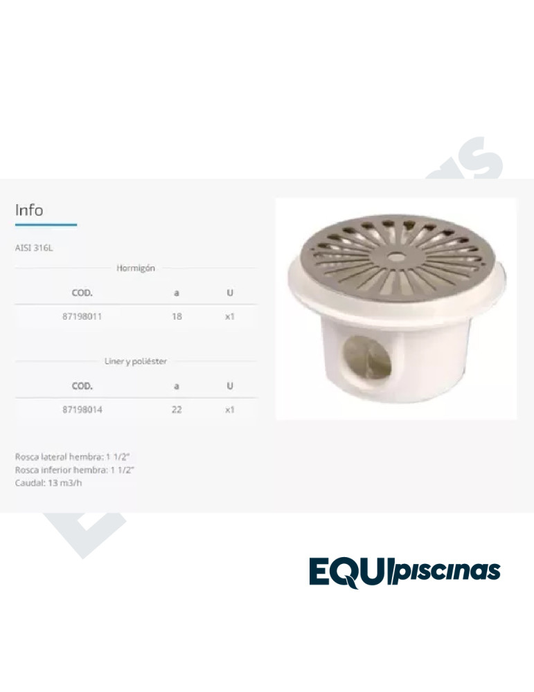 TANQUILLA DE FONDO FLEXINOX DIAMETRO 8"X2" ACERO INOX+ABS