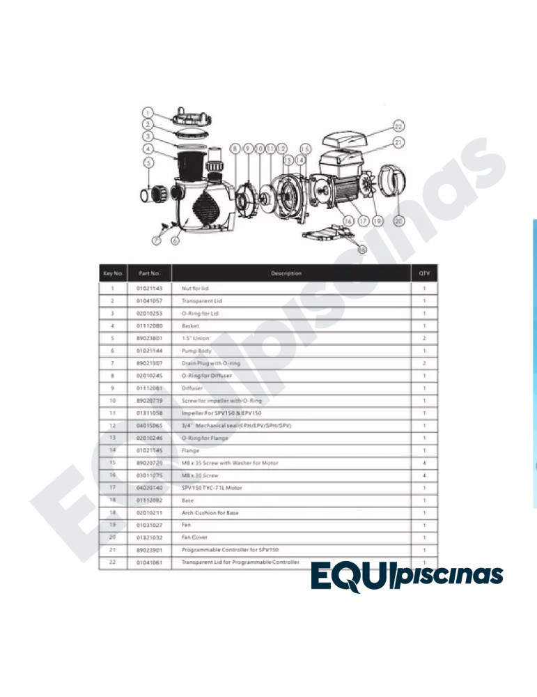 REPUESTO IMPULSOR (IMPELLER) PARA BOMBA EMAUX SUPER POWER 2 HP
