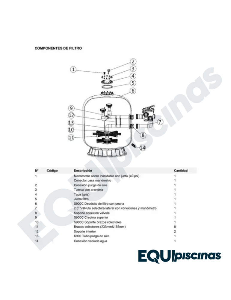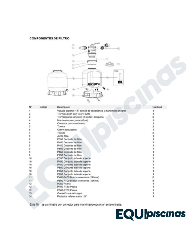 RESPUESTO JUEGO DE DRENAJE DE AGUA FILTRO EMAUX SERIE T