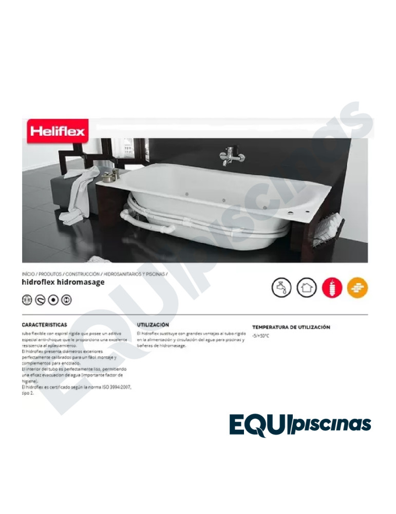 3) EL TUBO FLEXIBLE HIDROFLEX DE HELIFLEX PRESENTA DIÁMTEROS EXTERIORES PERFECTAMENTE CALIBRADOS PARA UN FÁCIL MONTAJE Y COMPLEMENTOS DE PEGADO (SOLDADURA PVC). SISTEMA MILIMÉTRICO.