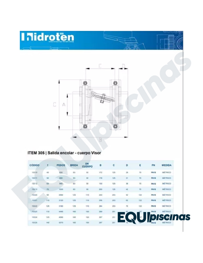 VALVULA CHECK CON VISOR HIDROTEN 200 mm P/PEGAR