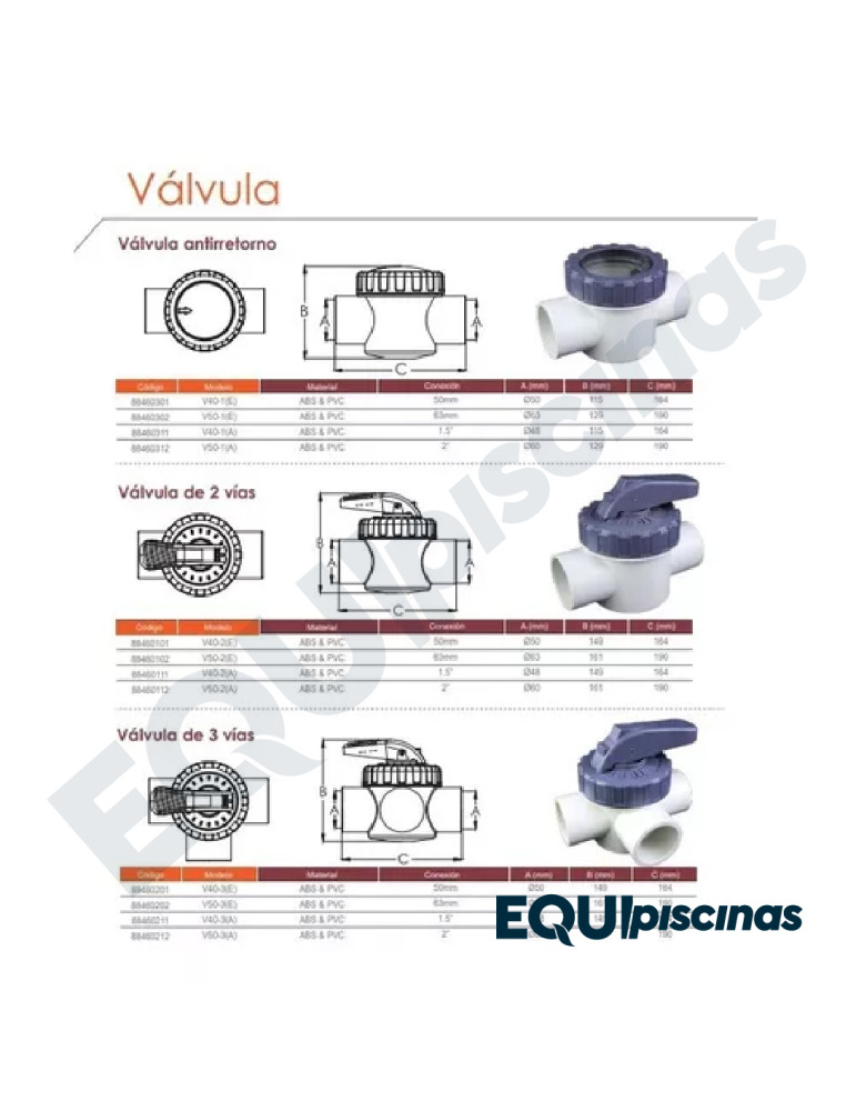 VALVULA PLASTICA ABS 3 VIAS 1-1/2" EMAUX