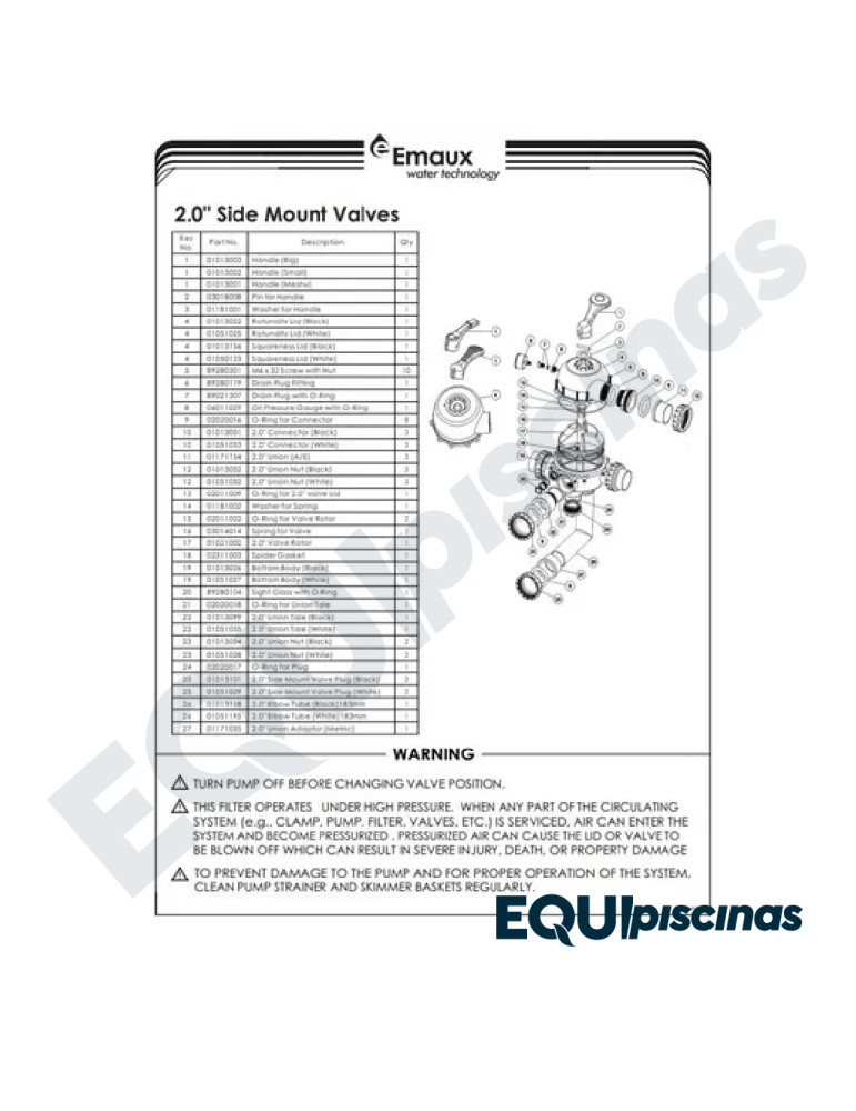 REPUESTO MANILLA GRANDE VALVULA MULTIPORT 2" MARCA EMAUX