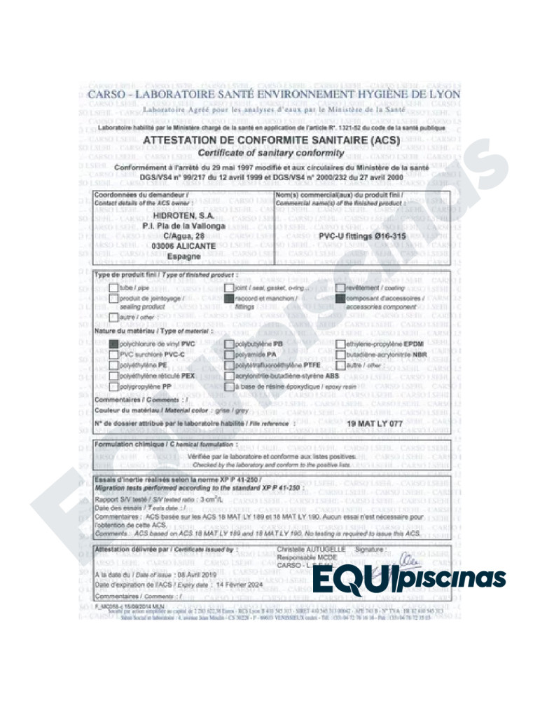 1) MARCA: HIDROTEN; 100% EUROPEA; PRODUCTO PREMIUM CON CERTIFICACIONES DE CALIDAD Y SANITARIAS