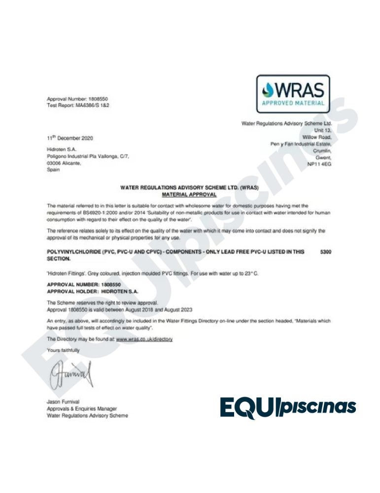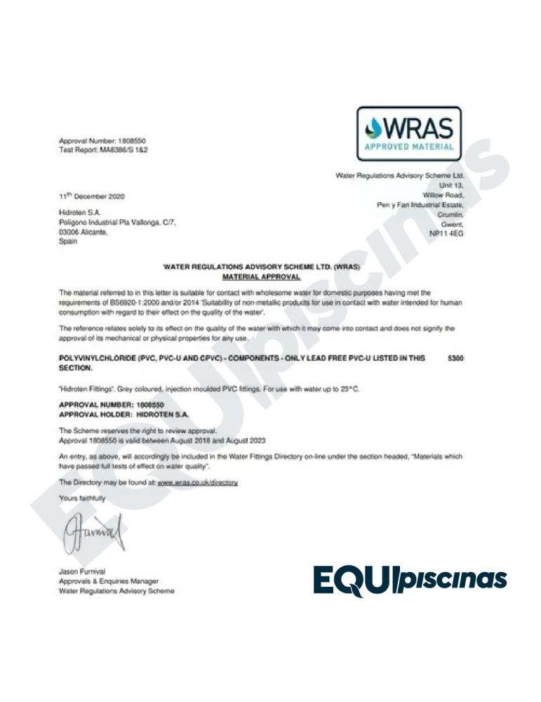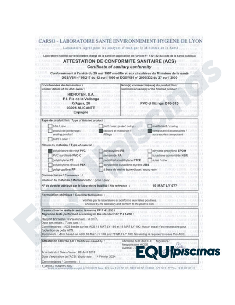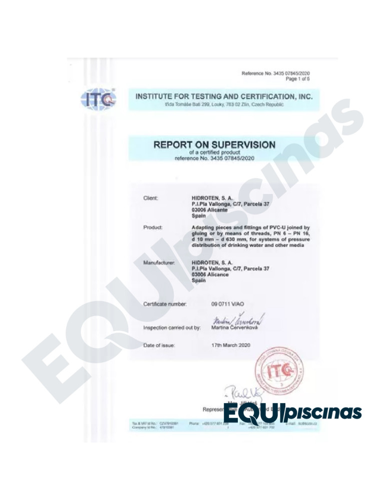 2) VALVULAS Y CONEXIONES CON CERTIFICACIONES SANITARIAS, CERTIFICACIONES DE CALIDAD DE MATERIAS PRIMAS, CERTIFICACIÓN DE CALIDAD DE VÁLVULAS; TODOS LOS ESTÁNDARES EUROPEOS DE CALIDAD