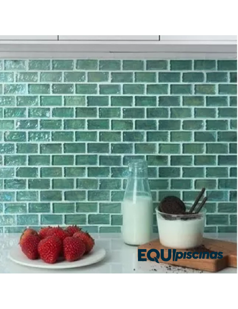 MOSAICO DE VIDRIO 2X4.2X8mm VERDE TORNASOL TB06 SERIE TENYION CAJA DE 1 M²