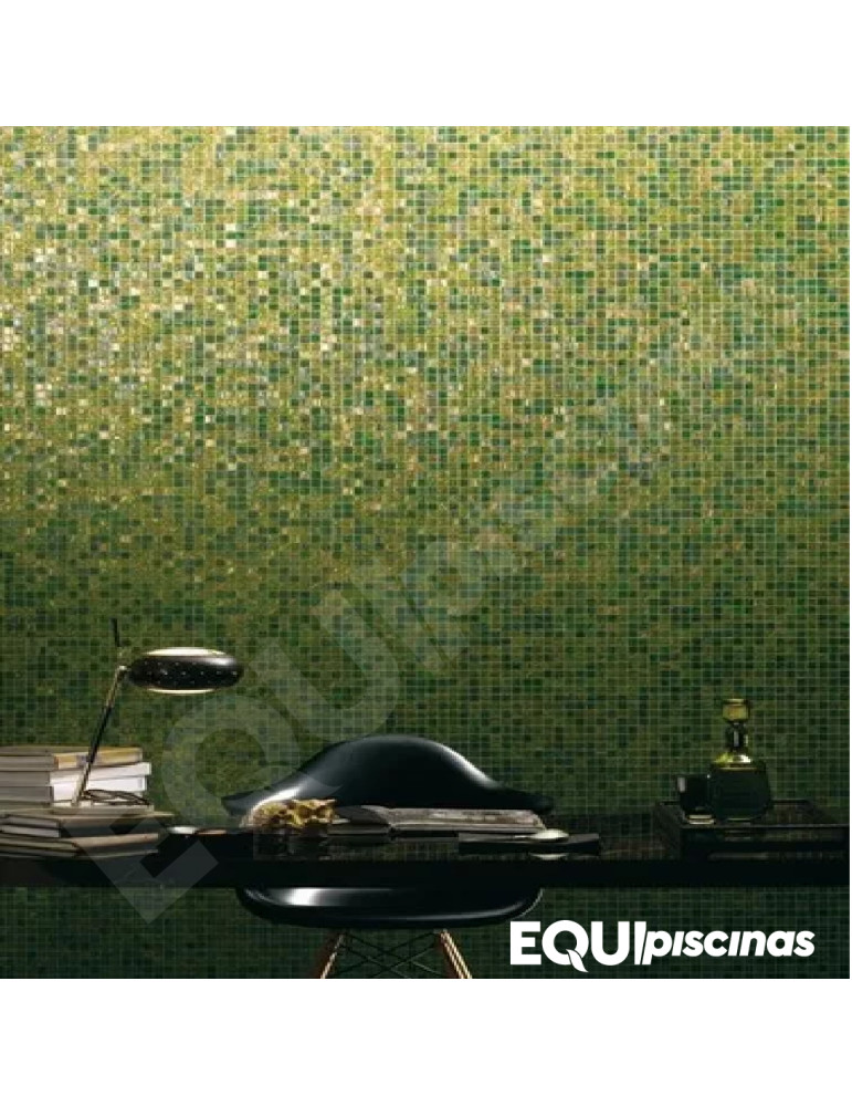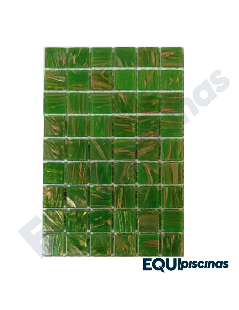 MOSAICO DE VIDRIO 2X2 VERDE TRASLUCIDO CON VETAS DORADAS (GS 04) S/M CAJA DE 1,07M²